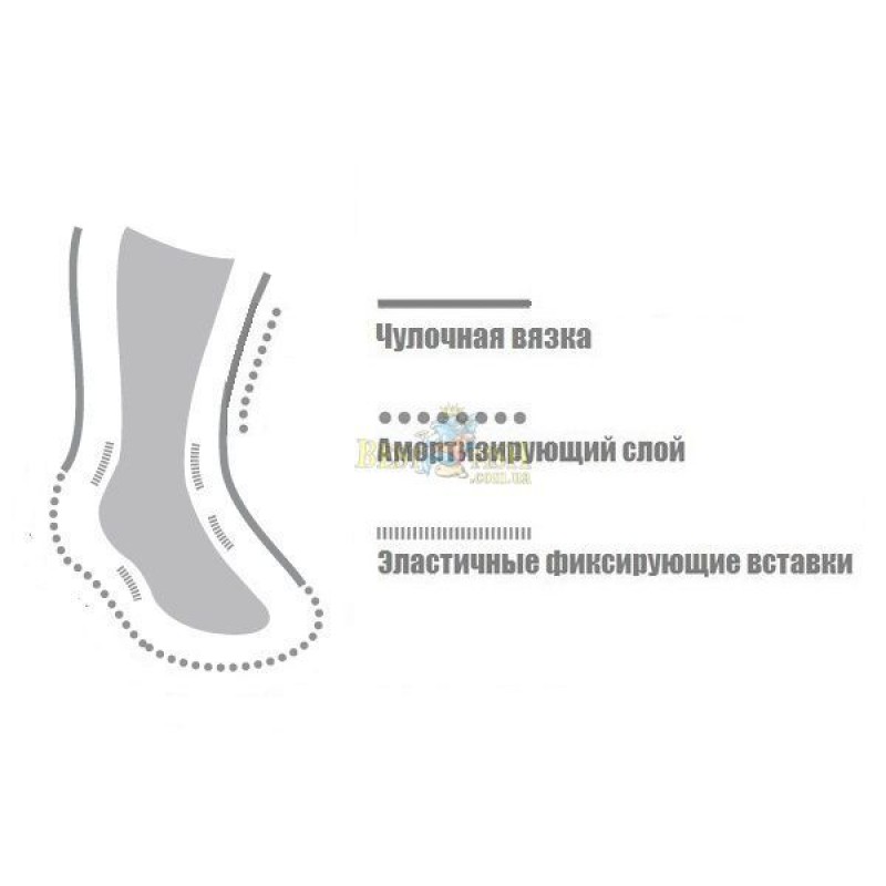 Antitorsion stretch band - эластичные вставки на ступне и/ или щиколотке, которые обеспечивают максимальное прилегание носка к ноге и препятствуют его вращению и сползанию в обуви. Такие носки лучше облегают ногу и обеспечивают стабильность во время ходьбы и особенно во время занятий спортом.