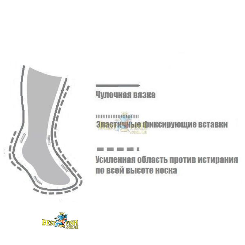 Antitorsion stretch band - эластичные вставки на ступне и/ или щиколотке, которые обеспечивают максимальное прилегание носка к ноге и препятствуют его вращению и сползанию в обуви. Такие носки лучше облегают ногу и обеспечивают стабильность во время ходьбы и особенно во время занятий спортом.