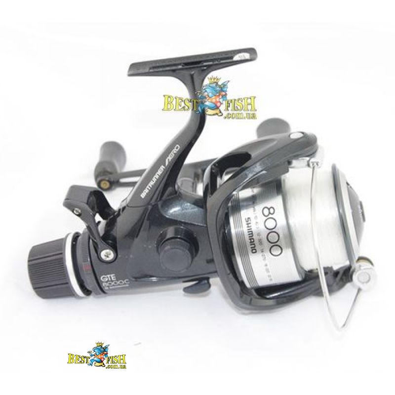 Котушка безінерційна з бейтраннером Shimano BAITRUNNER AERO GTE 8000 C. Ретро отделка корпуса цвета "чёрный графит" возвращена цієї легендарной моделі. В результате измененийAERO GTE GTE-C получил облегчённую двойную рукоятку, холоднокованую алюмінієву анодированную шпулю. Мультидисковый задній фрикціон з микрорегулюванням забезпечує безупречную работу котушки як в положении "свободная шпуля", так та в положении "поединок". Передавальне відношення число выросло з 4.5:1 до 4.6:1 та теперь за один оборот рукоятки котушка выбирает больше волосіні. Венчает семейство AERO GTE GTE-C котушка розміра 10000 призначенийная для сверхдальних закидів при використанні лісок великих діаметров. Все котушки Baitrunner Aero GTE-C оснащены системами Superstopper II, Dynabalance, Aero Wrap та 2-Speed Oscillation, що делает их одними з лучших карповых котушок Shimano при доступной ціною.