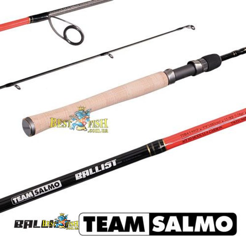 Вудилище спінінга TEAM SALMO BALLIST 5.9 / ML - серія вудилищ спінінгів, створена для лову різними методами, приманками і оснащеннями. Це нове покоління коротких, легких і чутливих спінінгів для твичинга і легкого джига, а потужні спінінги класу medium-heavy - для лову великими воблерами. Різні воблери, в тому числі великі і досить упористее, поверхневі приманки - Поппера і Уокер, повідкові оснащення, джиг - для всього цього корейські інженери виготовили серію BALLIST і довели її до досконалості. У цій топової серії коротких вудилищ спінінгів відмінного дизайну, все вивірено до дрібниць. Їх силовий характер завжди стане в нагоді при форсованому виведенні.