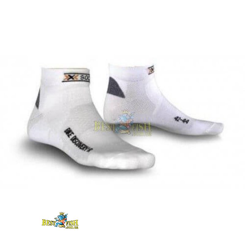 Високотехнологічні велосипедні шкарпетки представляють лінійку товарів з низькоцінового діапазону. Вони є ідеальним вибором для тих любителів велоспорту, хто тільки відкриває для себе продукцію X-SOCKS®. Відмінно підійдуть для велопрогулянок та подорожей на велосипеді. Володіють відмінною системою вентиляції, що забезпечує постійну циркуляцію повітря навіть в щільно облягає взуття. Зроблені з урахуванням анатомічних особливостей ступні й розділені на правий і лівий носок. Використання при виготовленні термоносков Bike Discovery запатентованих технологій і матеріалів забезпечує відмінну вентиляцію і підтримання оптимального мікроклімату тіла навіть в саму спекотну погоду. Гарантує максимальний комфорт і захист стопи навіть при високоінтенсивної навантаженні в зонах максимального тиску і тертя. Багатоцільова тканину Robur ™ складається з порожнистих волокон з гермитичность повітряною камерою. Тканина дихаюча і еластичний. Захищає від ударних навантажень і тиску. Застосовується в зонах, особливо схильних до утворення потертостей і саден - ахіллове сухожилля, підошва, гомілковостопний суглоб, гомілка. Тканина Robur ™, зіткана з трижильний плетеної нитки, надзвичайно міцна і зносостійка. Mythlan ™ - ультралегкий, дихаючий матеріал з мікроволокнистого структурою. Найлегший серед високотехнологічних матеріалів. Тканина Mythlan ™ не накопичує вологу і сприяє ефективному процесу її випаровування з зовнішньої поверхні. Має нейтральне значення pH і гіпоалергенна. До складу тканини шкарпеток входить бавовна.