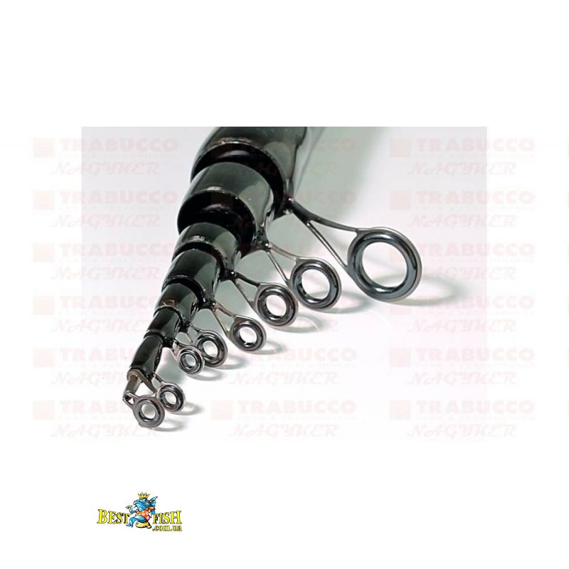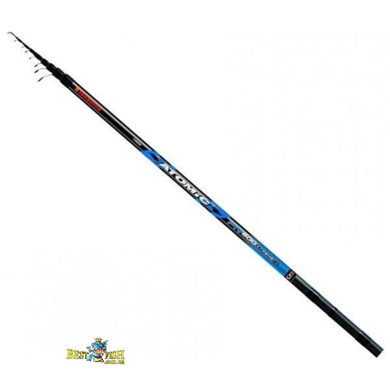 Якщо вам потрібна Болонська вудка перевершує по потужності все що ви бачили до цього Trabucco Atomic Xtreme 6 якраз те що Вам потрібно! Цим вудилищем можна закидати оснащення вагою до 100г і підняти вагу до 6 кг. Серія складається з двох вудилищ завдовжки 5 і 6 м. Бланк вудки зроблений з карбону CX-1 і посилений карбонової обмоткою по всій довжині. Рекомендується використовувати волосіні діаметром 0,25-0,30мм.
