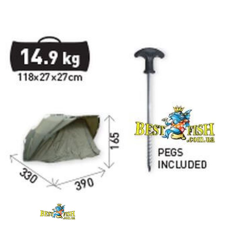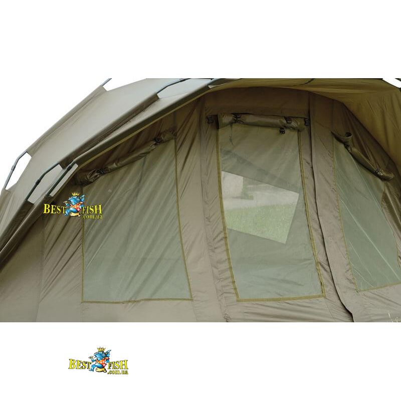 Намет коропова Carp Zoom Carp Expedition Bivvy 3 + 1. Містка і простора рибальське намет Carp Zoom серії Carp Expedition Bivvy 3 + 1 відрізняється підвищеним комфортом, посиленою конструкцією і високоякісним виконанням, ідеальний компаньйон для тривалих рибалок, походів. Розрахована на місткість компанії з 4-х осіб з повноцінними короповими розкладачками і спорядженням, виконана з водонепроникного і зносостійкого матеріалу (8000 мм по водній шкалою). Карпова намет має невеликий навіс, два великих задніх вікна і два передніх, які при необхідності можна закрити, всі вікна з москітними сітками. Надійна і добре продумана намет Короп Зум оснащена потужними алюмінієвими дугами, які розташовані паралельно один одному і скріплені поперечно. Така конструкція забезпечує велику стійкість, а дуже надійне днище з потовщеного ПВХ, міцні T-образні кілочки і високоякісна фурнітура - гарантують максимальний комфорт і задоволення у використанні на довгі роки. У сильні морози рекомендується використовувати з зимовим покриттям, яке можна купити окремо.