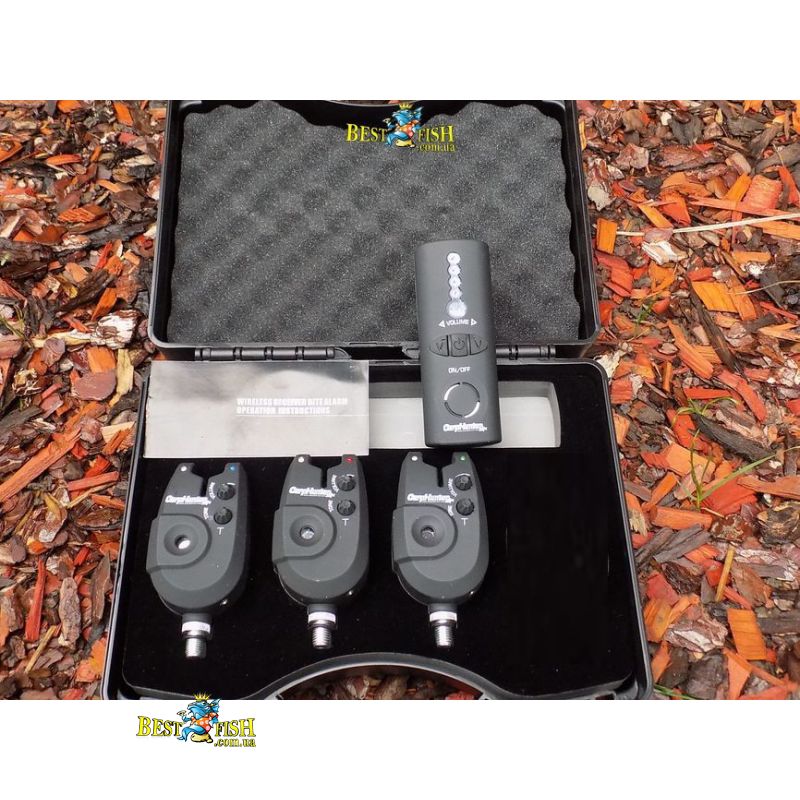 Набір сигналізаторів клювання EnergoTeam Carp Hunter Radio Digital Szett 3 + 1 складається з 3 сигналізаторів і бездротового пристрою (рації) все складено в надійному пластиковому кейсі. Сигналізатори можуть працювати і без радіо зв'язку. Рація працює на дистанції близько 120 метрів і її можна налаштувати на свій смак, гучність тону. Окремо можна докупити в нашому інтернет магазині четвертий сигналізатор клювання синього кольору.