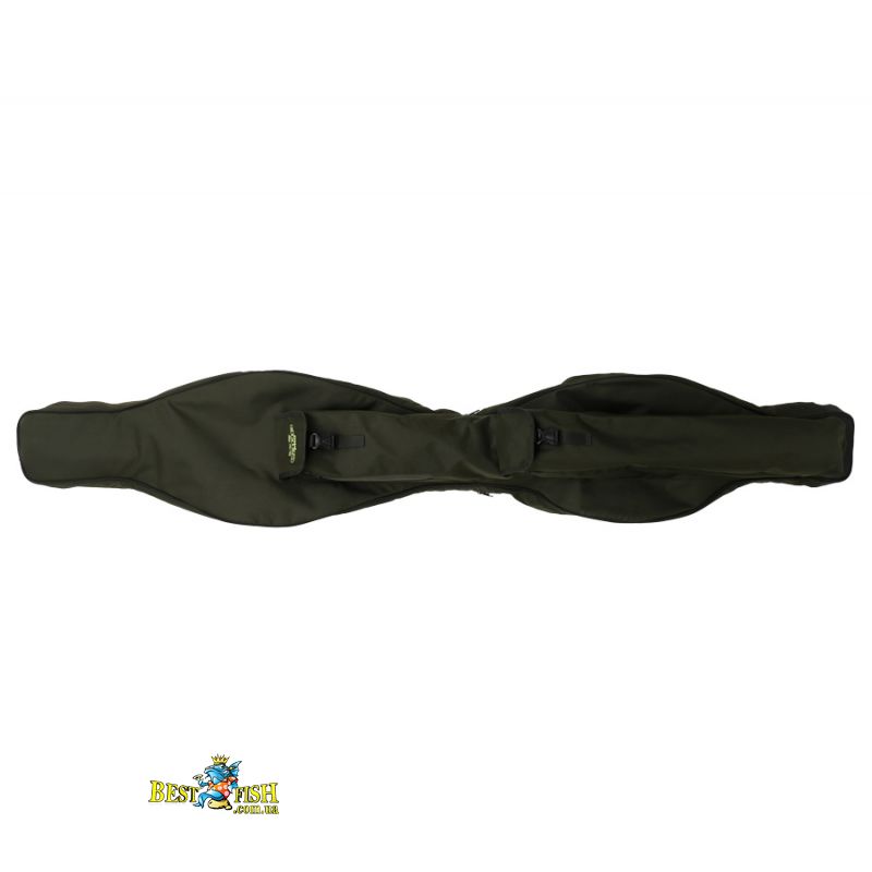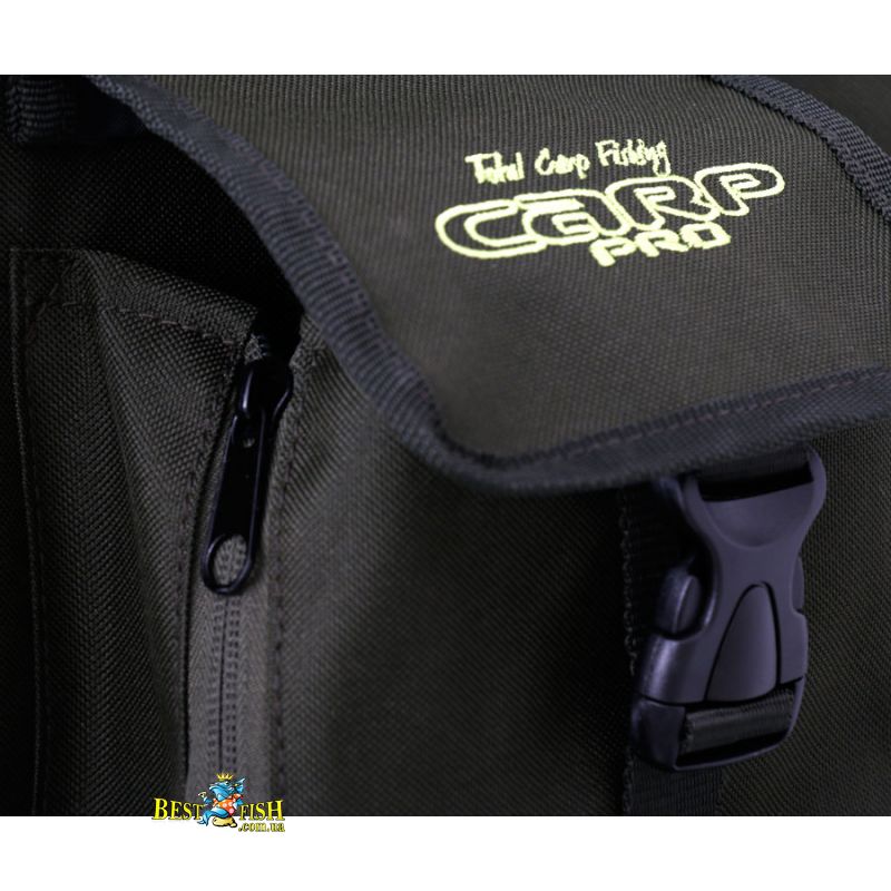 Чехол Carp Pro 600D также имеет два внешних кармана, которые можно открыть двумя способами — открыв молнию сбоку или отстегнув клапан на fastex-защелке сверху. Эти карманы способны вместить зонт, ручку подсака, подставки под удилища и другие аксессуары.
