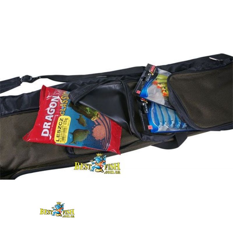 Виконаний з дуже міцного водонепроникного нейлону типу Oxford 2006. Продумана конструкція, велика функціональність, матеріали вищої якості, додаткові укріплення і турбота про кожну деталь оздоблення роблять його чохлом, який буде служити рибалці багато років. Всі сумки і чохли Team Dragon оснащені міцними застібками-блискавками японської фірми YKK. Функціональні чохли з двома великими відділеннями, в яких можна зберігати кілька наборів вудилищ. Кожне відділення має додаткові мотузки для кріплення вудилища. З обох сторін чохла знаходяться кишені - з одного боку довгий кишеню для підсака і підтримки, з іншого боку - два великих кишені, в яких без проблем поміститься, наприклад підгодовування.