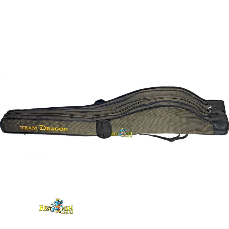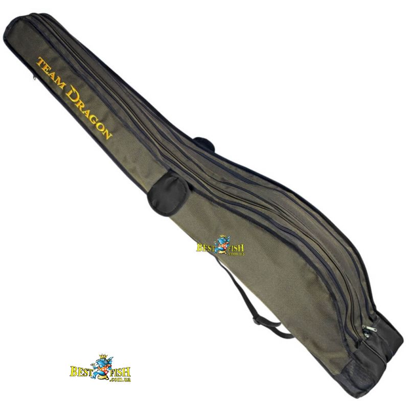 Дуже міцний, водонепроникний; виготовляється з нейлону типу Оксфорд 2600. Продуманий дизайн, кілька зовнішніх кишень, високоякісні матеріали, додаткові кріплення і увага до кожної деталі оздоблення робить його продуктом високої якості, який буде служити рибалці протягом багатьох років. У виробництві всіх чохлів для спінінгів, TEAM DRAGON використовує надзвичайно міцні та довговічні блискавки YKK японської компанії.