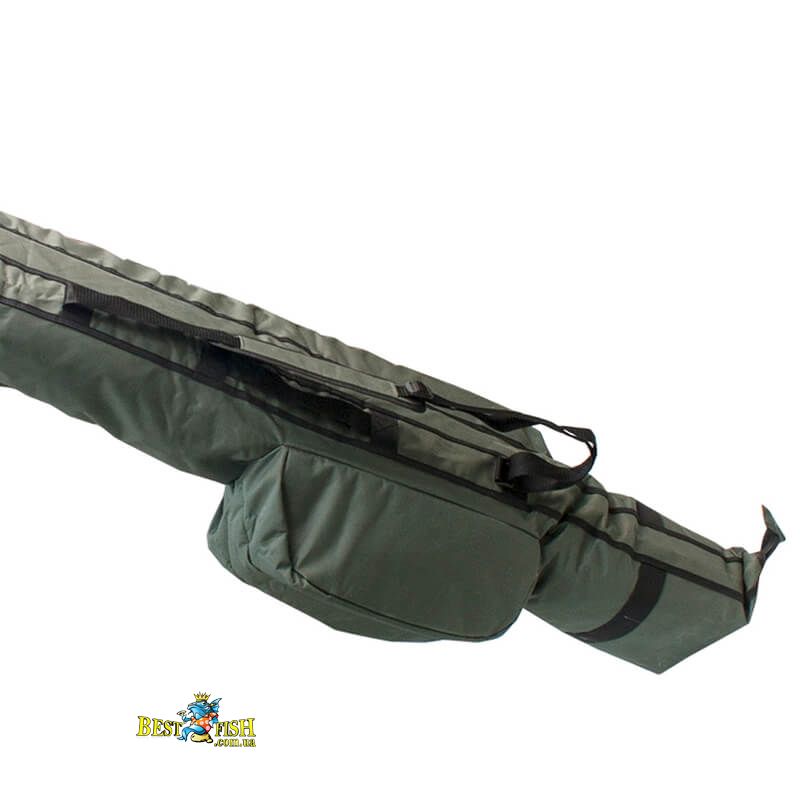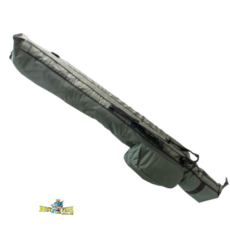 Чохол розроблений спеціально транспортування і зберігання коропових двосекційних вудилищ завдовжки 390 з котушками. М'який, має 3 відсіку з перегородками, зовнішній матеріал повністю водонепроникний, не страшний навіть проливний дощ. Чохол оснащений посиленими блискавками і ременем для перенесення. Також підійде для транспортування рибальського парасольки або підсаки в величезному бічному відсіку.