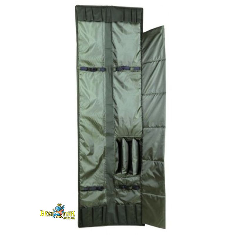 Чохол дуже хорошої якості з м'якою підкладкою з ПВХ-матеріалу Oxford 600d для 3 вудилищ з 3 котушками. Для вудилищ до 210см. Має дві кишені, один з яких призначений для зберігання парасольки. В іншому ми можемо зберігати практично все, що завгодно. Міцна блискавка і підкладка.