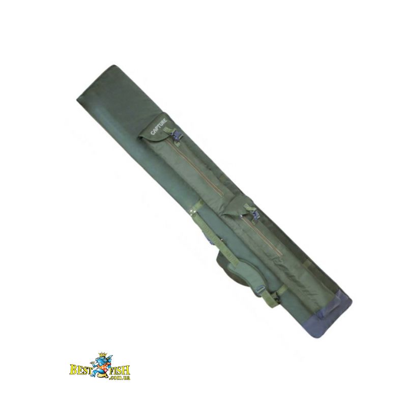 Чохол дуже хорошої якості з м'якою підкладкою з ПВХ-матеріалу Oxford 600d для 4 вудилищ з 4 котушками. Для вудилищ до 210см. Має дві кишені, один з яких призначений для зберігання парасольки. В іншому ми можемо зберігати практично все, що завгодно. Міцна блискавка і підкладка.