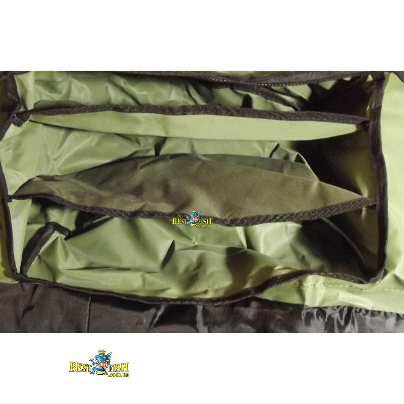• Має перегородку і кріплення у вигляді стрічок-липучок під шість вудилищ.