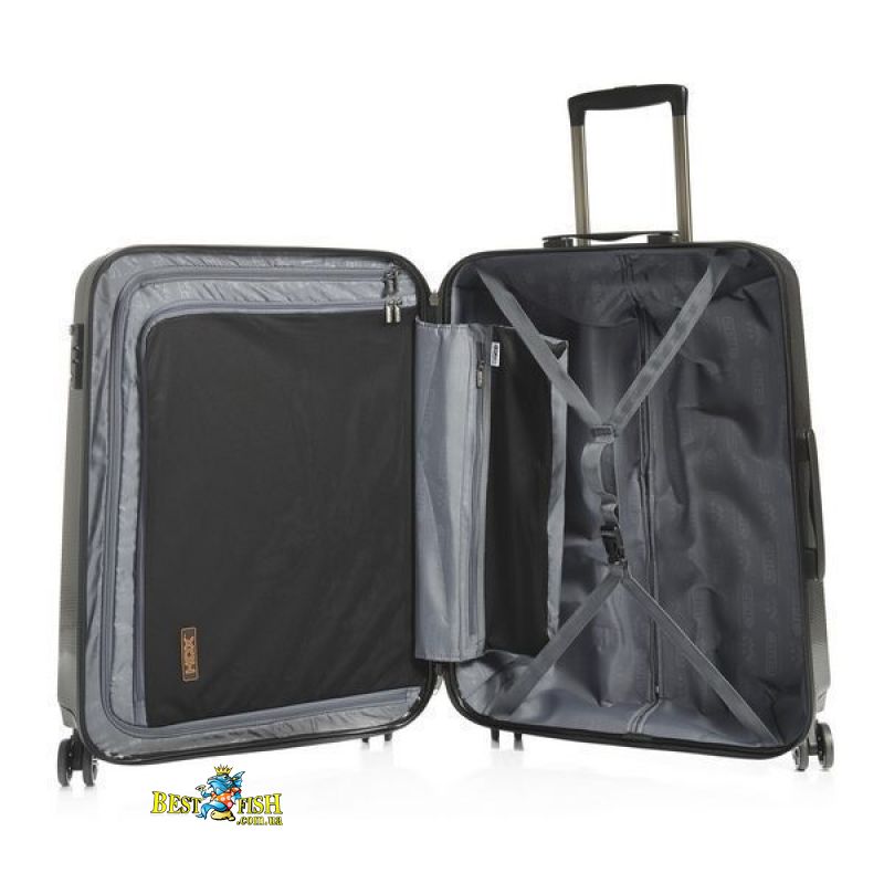 - Матеріал: HexaCORE ™ Bayer® Makrolon® (Polycarbonate) - найбільш міцний і еластичний матеріал для виробництва корпусів валіз. Стійкий до ударних навантажень, після деформації повертає колишню форму. Має зовнішню структуру HexaCORE ™.