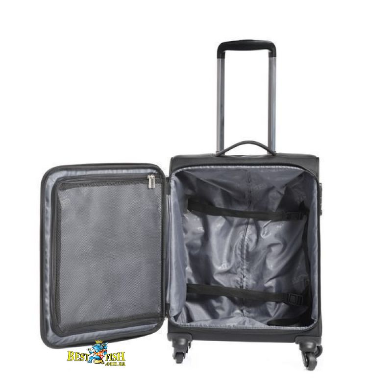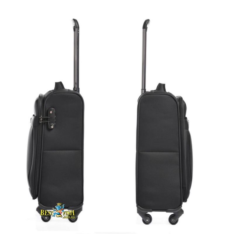 - SOFT SHELL POLYESTER 500D - ткань из полиэстера с толщиной нити 500D, имеющая объемный мелкий узор, создающий внешнюю игру света, и с внутреннее полиуретановое покрытие, защищающее содержимое чемодана от намокания во время дождя средней интенсивности. Также ткань обладает хорошей износостойкостью, и не разрушается под действием ультрафиолетового излучения.