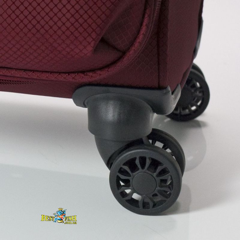 Чемодан оснащений чотирма спареними роликовими колесами з високотемпературного термопластичного поліуретану (TPU). Матеріал володіє міцністю порівнянної з пластиком, гнучкістю силікону, а так само має підвищену стійкість до перепадів температур. Відмінною особливістю коліс з TPU матеріалу є зниження шуму до мінімуму при коченні валізи по нерівній поверхні. Завдяки стійкості до стирання матеріал коліс відрізняється тривалим терміном експлуатації.