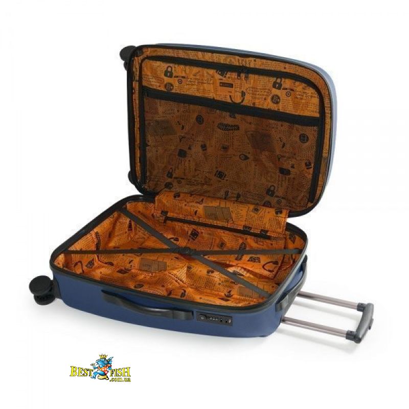 - Чемодан розділений перегородкою на блискавці на два основних відділення, перегородка має карман на блискавці