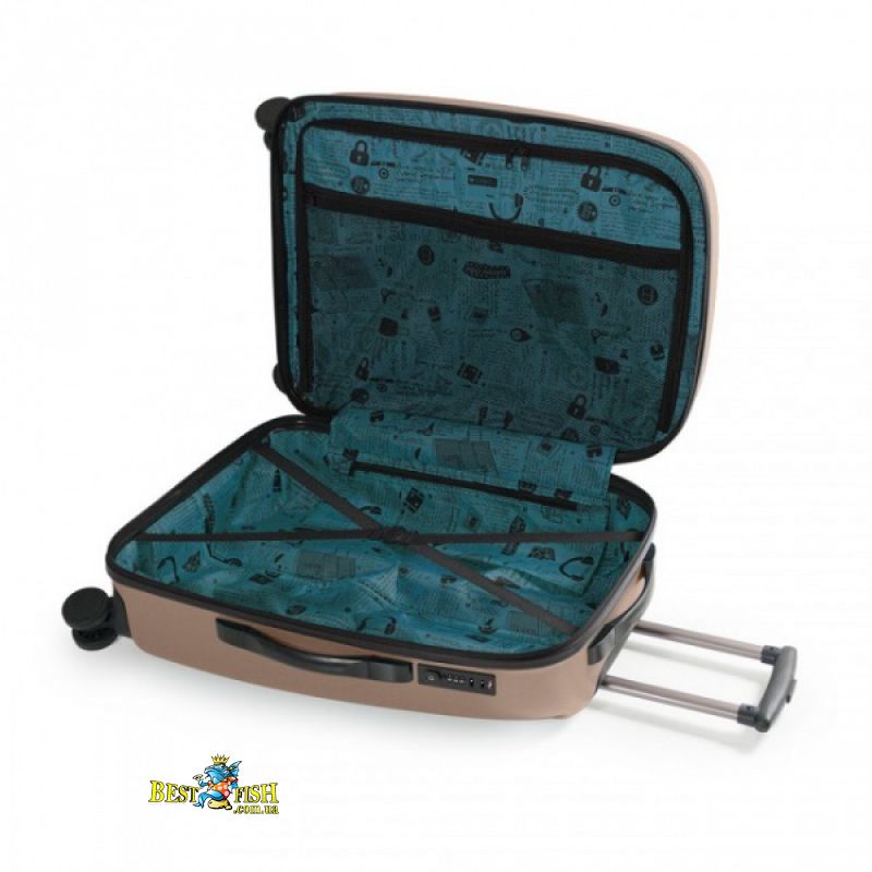 - Чемодан розділений перегородкою на блискавці на два основних відділення, перегородка має карман на блискавці