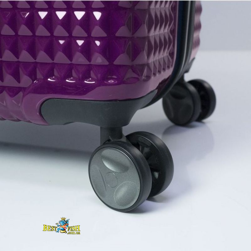 Чемодан оснащен четырьмя полноповоротными, спаренными колесами с возможностью независимого разворота каждого колеса на 360 °. Системой предусмотрено равномерное перераспределения нагрузки на каждое колесо, что в свою очередь способствует плавному качению и маневренности чемодана, прилагая при этом минимум усилий. Колеса изготовлены из высокотемпературного термопластичного полиуретана (TPU). Материал обладает прочностью сравнимой с пластиком, гибкостью силикона, а так же имеет повышенную устойчивость к перепадам температур. Отличительной особенностью колес из TPU материала является снижение шума до минимума при качении чемодана по неровной поверхности. Благодаря устойчивости к истиранию материал колес отличается длительным сроком эксплуатации.