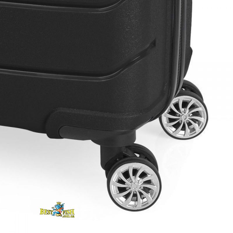 Чемодан оснащений чотирма повноповоротними, спареними колесами з можливістю незалежного розвороту кожного колеса на 360 °. Системою передбачено рівномірне перерозподілу навантаження на кожне колесо, що в свою чергу сприяє плавному коченню і маневреності валізи, докладаючи при цьому мінімум зусиль. Колеса виготовлені з високотемпературного термопластичного поліуретану (TPU). Матеріал володіє міцністю порівнянної з пластиком, гнучкістю силікону, а так само має підвищену стійкість до перепадів температур. Відмінною особливістю коліс з TPU матеріалу є зниження шуму до мінімуму при коченні валізи по нерівній поверхні. Завдяки стійкості до стирання матеріал коліс відрізняється тривалим терміном експлуатації.
