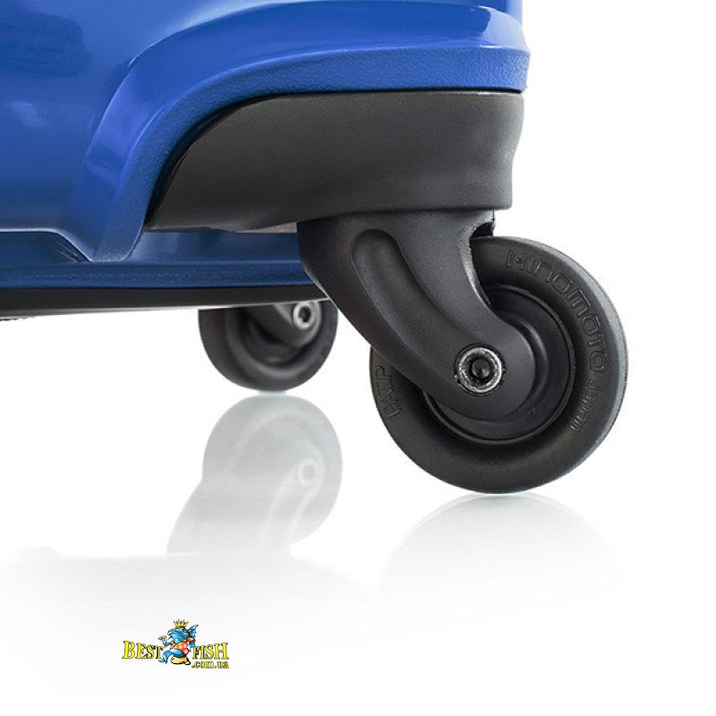 Чемодан оснащен четырьмя полноповоротными японскими колесами Hinomoto™ с возможностью независимого разворота каждого колеса на 360°. Патентированные японские разработки от Hinomoto™ гарантируют высокую прочностью и долговечностью. Для наката, к чемодану с колесами от Hinomoto™, прикладывается сила в два раза меньше по сравнению с чемоданом на обычных  колесах. Системой предусмотрено равномерное перераспределения нагрузки на каждое колесо, что в свою очередь способствует плавному качению и маневренности чемодана, прилагая при этом минимум усилий.