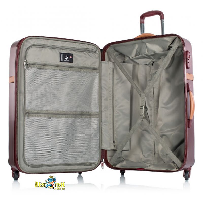 Стильна обробка у вигляді шкіряних ременів по корпусу валізи надає вишуканості даної серії, а шкіряні ручки для перенесення валізи, як у вертикальному, так і в горизонтальному положенні, створюють необхідний комфорт.