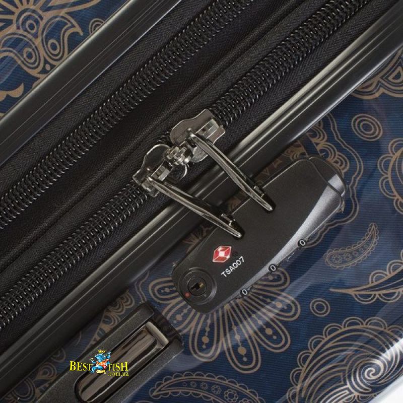 Чемодан оборудован фирменным кодовым замком с функцией таможенного досмотра TSA (Transportation Security Administration - Администрация по безопасности на транспорте). Таможенные службы совместно с Американской Ассоциацией по безопасности на транспорте (Transportation Security Administration или, сокращенно, TSA) получили абсолютное право, в целях безопасности, досматривать любой чемодан на колесах или сумку, показавшуюся им подозрительной. Агенты по безопасности на транспорте снабжены специальными TSA ключами, за которые они несут персональную ответственность. Благодаря наличию в замке функции TSA после досмотра ваши замки останутся целыми и невредимыми в отличии от багажа без функции TSA.