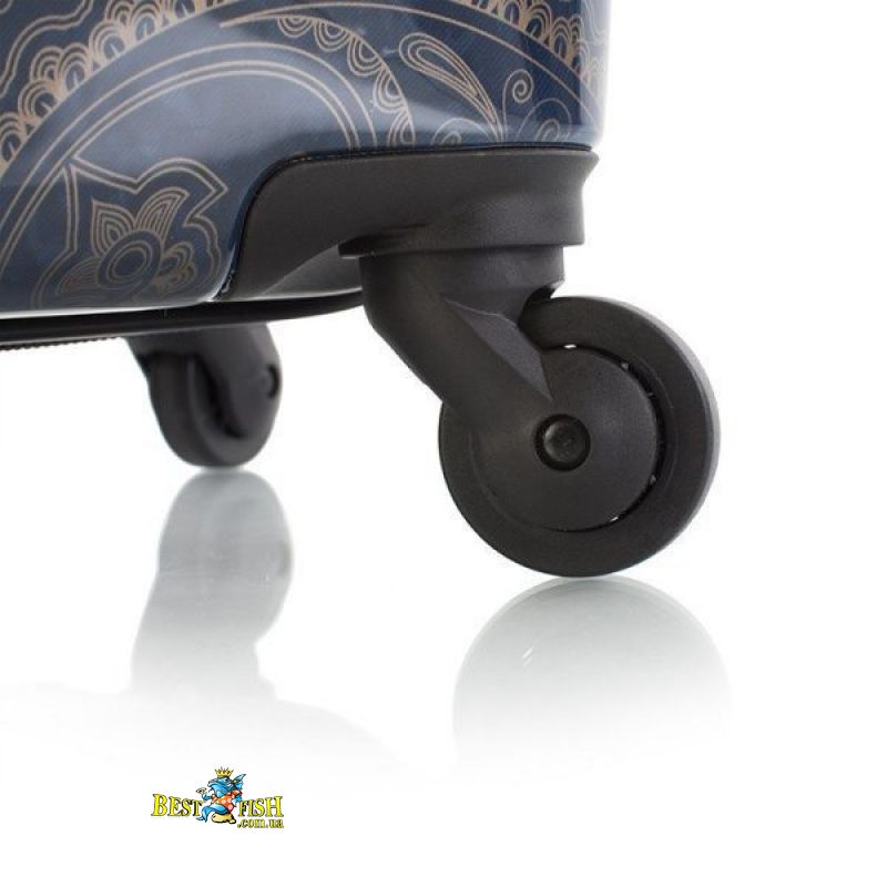 Чемодан оснащен четырьмя полноповоротными колесами системы Spinner с возможностью независимого разворота каждого колеса на 360 °. Системой предусмотрено равномерное перераспределения нагрузки на каждое колесо, что в свою очередь способствует плавному качению и маневренности чемодана, прилагая при этом минимум усилий.