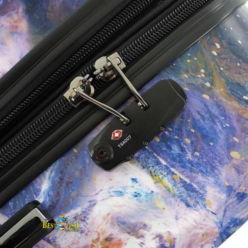 Чемодан оборудован фирменным кодовым замком с функцией таможенного досмотра TSA (Transportation Security Administration - Администрация по безопасности на транспорте). Таможенные службы совместно с Американской Ассоциацией по безопасности на транспорте (Transportation Security Administration или, сокращенно, TSA) получили абсолютное право, в целях безопасности, досматривать любой чемодан на колесах или сумку, показавшуюся им подозрительной. Агенты по безопасности на транспорте снабжены специальными TSA ключами, за которые они несут персональную ответственность. Благодаря наличию в замке функции TSA после досмотра ваши замки останутся целыми и невредимыми в отличии от багажа без функции TSA.