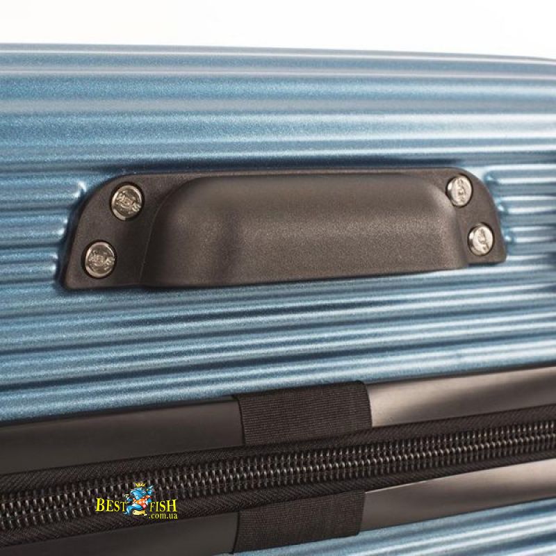 - Ручки с гелиевой вставкой в верхней и боковой части чемодана для удобства транспортировки в вертикальном и горизонтальном положении