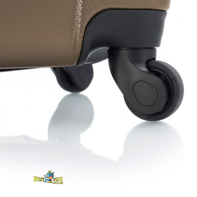 Чемодан оснащен четырьмя полноповоротными колесами системы Spinner (сделаны в Японии), с возможностью независимого разворота каждого колеса на 360 °. Системой предусмотрено равномерное перераспределения нагрузки на каждое колесо, что в свою очередь способствует плавному качению и маневренности чемодана, прилагая при этом минимум усилий.