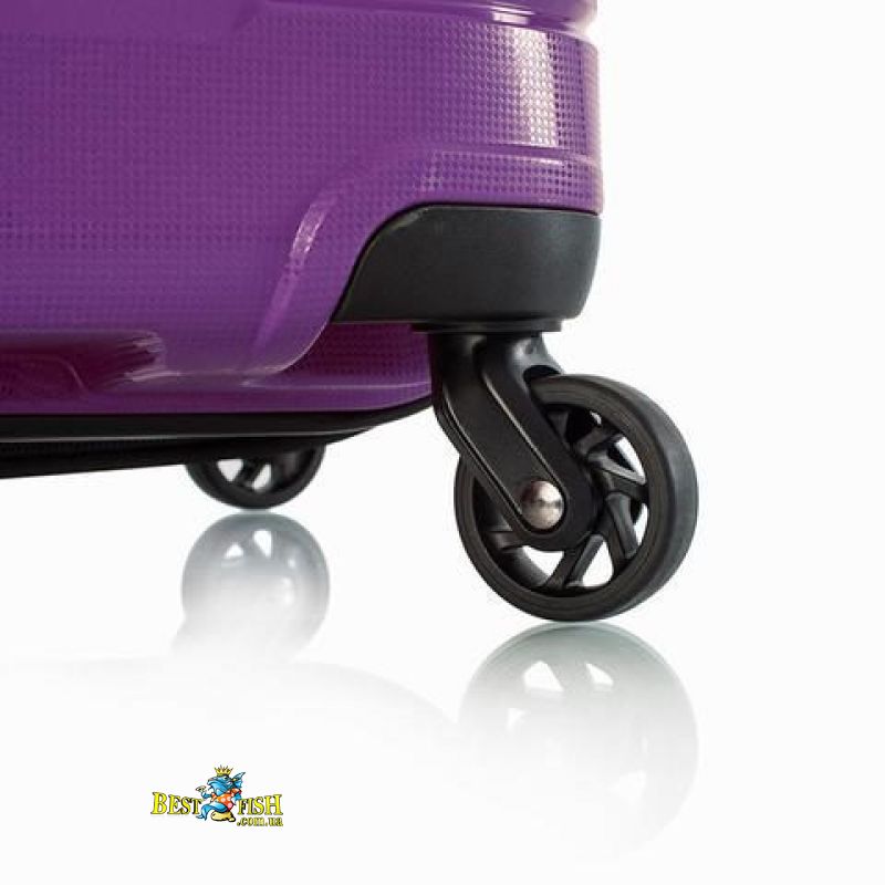 Чемодан оснащен четырьмя полноповоротными колесами системы Spinner с возможностью независимого разворота каждого колеса на 360 °. Системой предусмотрено равномерное перераспределения нагрузки на каждое колесо, что в свою очередь способствует плавному качению и маневренности чемодана, прилагая при этом минимум усилий.