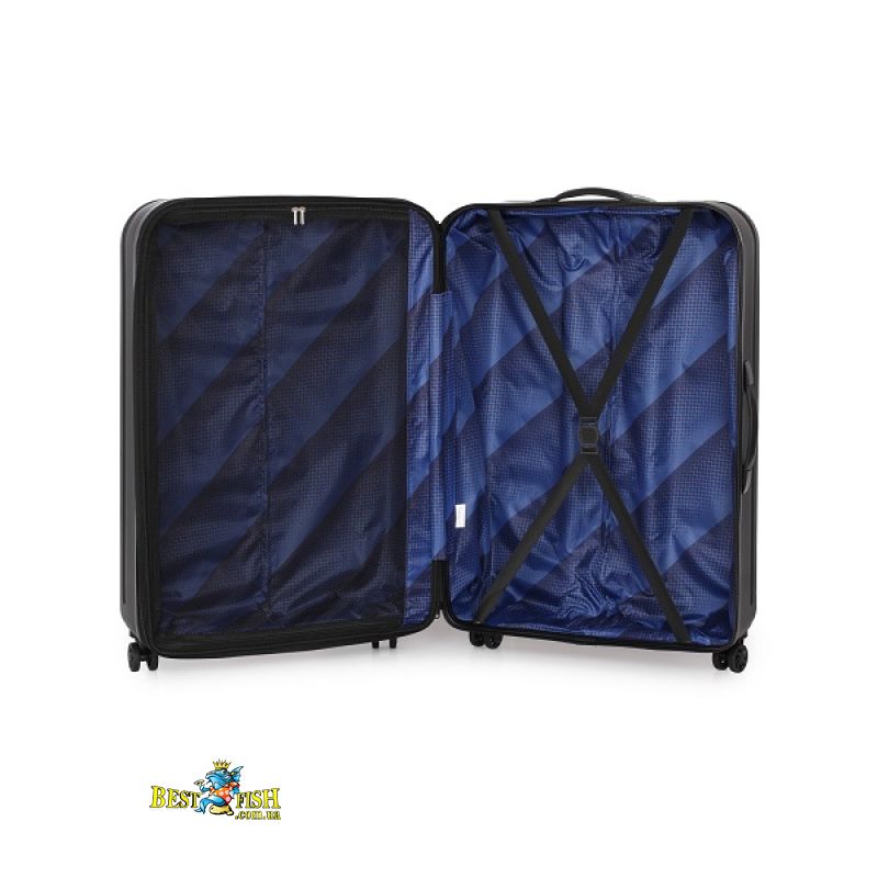 - Чемодан разделен сетчатой перегородкой на молнии на два основных отделения