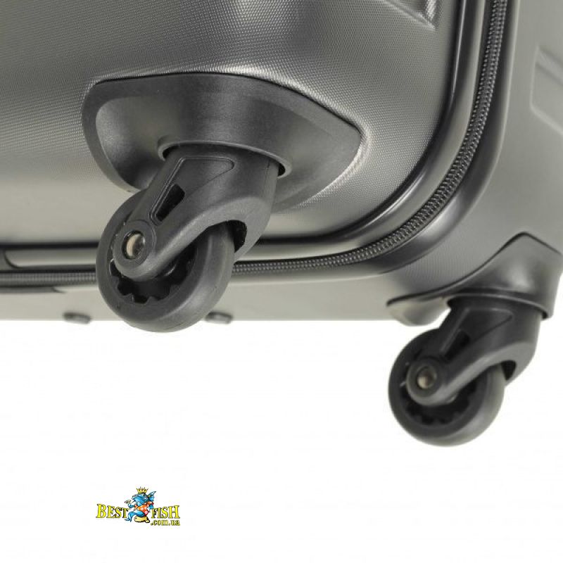 Чемодан оснащен четырьмя полноповоротными колесами с возможностью независимого разворота каждого колеса на 360 °. Системой предусмотрено равномерное перераспределения нагрузки на каждое колесо, что в свою очередь способствует плавному качению и маневренности чемодана, прилагая при этом минимум усилий.