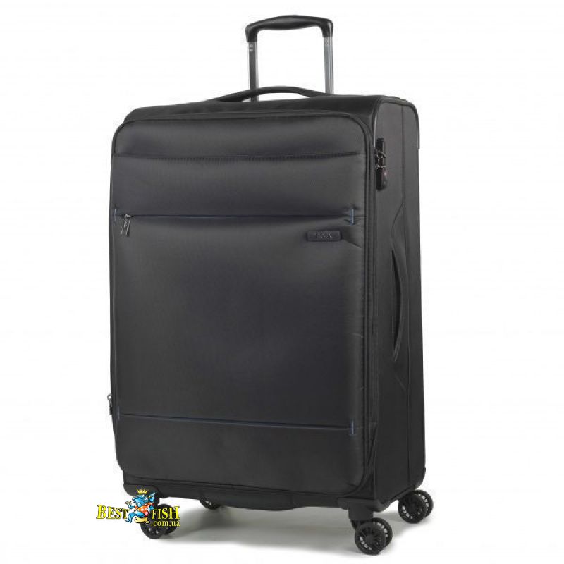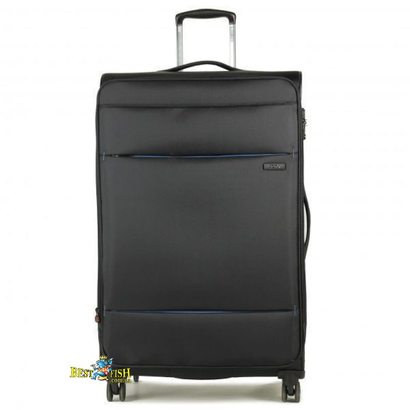 Для большей безопасности вещей предусмотрен удобный кодовый замок системы TSA. Внутри чемодан оснащен компрессионными стяжками и карманом на молнии. Мелкие вещи и вещи первой необходимости можно разместить в фасадном внешнем кармане. Четыре полноповоротных сдвоенных полиуретановых колеса обеспечивают плавный ход и простое управление чемоданом с помощью телескопической ручки, фиксируемой в двух положениях. Для защиты чемодана от внешних повреждений предусмотрена пластиковая защита дна и углов корпуса. Предусмотрена возможность увеличить полезный объем чемодана до 10%, благодаря наличию клапана, расстегнув специальную молнию по периферии чемодана.