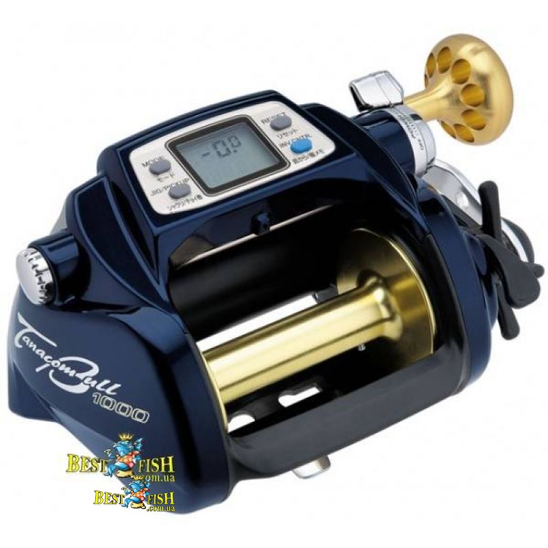 Котушка Daiwa Tanacom Bull TB1000Вес: 1488 гр. Передаточное число: 2.3:1 Подшипников: 4, Лесоемкость: Леска: Lb/M. 30/700, 40/500 Шнур: Lb/M. 60/1100, 80/900 Нагрузка на тормоз: 48 кг. Мультипликатор электрический.