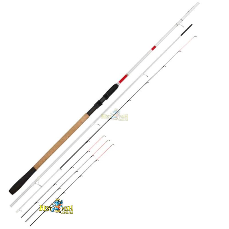 Справжня знахідка для гурманів фідера! Витончене і посилістое вудилище чудового повільного ладу не тільки забезпечить дальній кидок, але і дозволить повністю насолодитися процесом виведення, викликаючи вибух адреналіну при кожному ривку попалася на гачок риби. Вудилища виготовлені з високомодульного графіту 36T японського виробництва, що дозволив досягти максимального компромісу між вагою і ладом. На бланках встановлені високоякісні полегшені кільця Sea Guide зі вставками LTS (Light Weight SIC), що не перевантажують вудилище з одного боку, а з іншого дозволяють закидати оснастку на максимальну дистанцію. Ергономічна комбінована рукоятка з матеріалу EVA (в нижній частині) і високоякісної португальської пробки класу ААА з катушкотримачем Fuji DPS забезпечує міцний хват і робить роботу з вудилищем неймовірно комфортною.