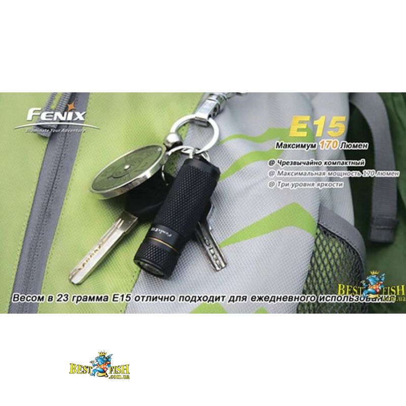 Фонарь-брелок Fenix E15 R2 будет вашим незаменимым помощником в дороге, в туристическом походе и дома. Его с легкостью можно сделать брелоком на ключи, он ещё меньше, чем E05 по длине, но больше в диаметре. Максимальная дальность луча 90 метров при практически двух часах времени беспрерывного света. Такую мощность обеспечивает одна батарейка CR123.