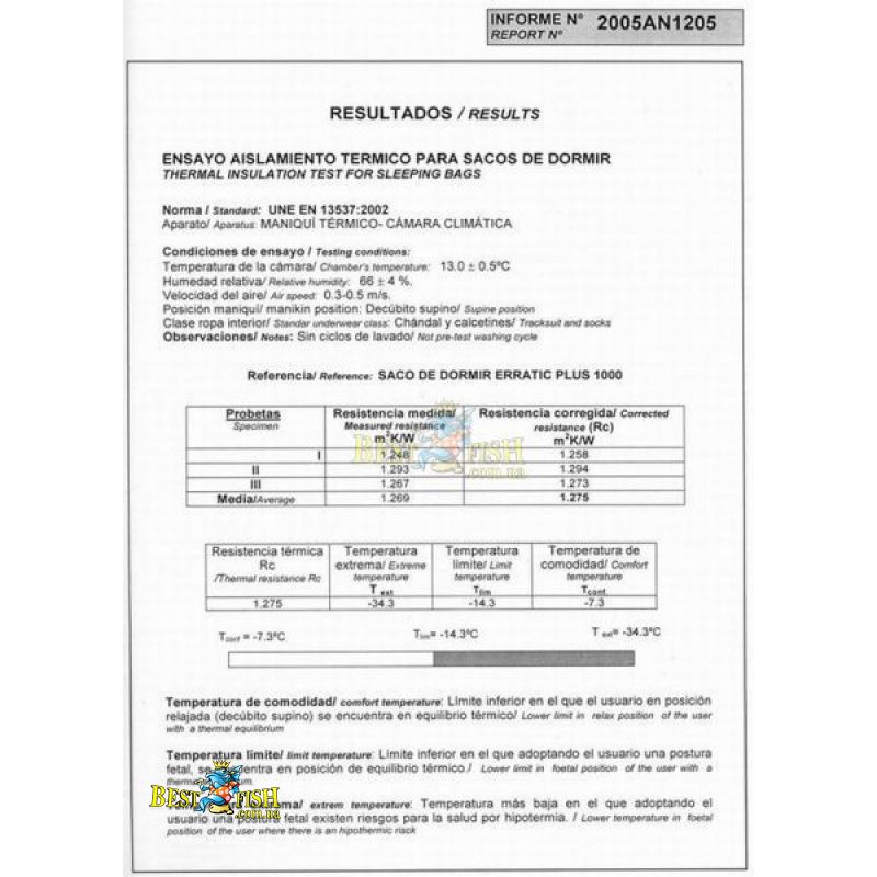 Компанія Sir Joseph була першою в Чехії, хто став сертифікувати свої спальні мішки по стандарту EN 13357. Даний стандарт нормує вимоги до спальних мішків, і підтверджує відповідність зазначених температурних режимів, розмірів і ваги на ярликах. Згідно стандарту, передбачається, що людина одягнений в функціональна термобілизна і використовує килимок відповідного температурного режиму. Спальний мішок Sir Joseph Erratic plus II 1000 тестований на повну відповідність Європейському стандарту EN 13357: 2012.