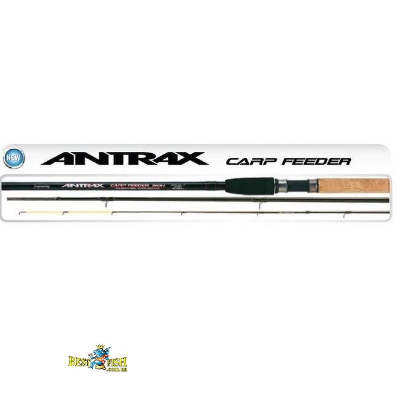 Antrax Carp Feeder - могутнє фідерне вудилище для лову коропа. Виготовлено з високомодульного HM Carbon-а з посиленням HR Carbon високого опору. Має прогресивний лад, завдяки якому дозволяє закид навіть важких годівниць, велику чутливість навіть до делікатної клювання і потужність при виведенні будь-якої риби. Оснащене кільцями S-SIC Light Frame, новим ергономічним катушкотримачем і ручкою з натуральної пробки. В комплекті 2 вершинки тестом 1 і 2oz.