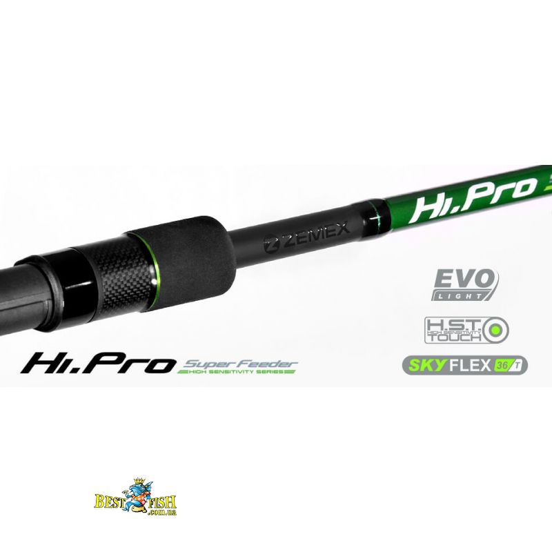 Оновлена серія вудлищ Zemex Hi-Pro Super Feeder стала більш виразною, лад бланка став більш зібраним і динамічним, що вдалося досягти завдяки високоякісному карбону, унікальній комбінації сполучних матеріалів і концепції якісних кілець. Зовнішній вигляд також придбав лиск і елегантні обриси, притаманні фідерів спортивного класу. Універсальний середньо-швидкий лад, і великий модельний ряд дозволять підібрати фідер для будь-яких умов і на будь-який смак. У серії Hi-Pro присутні потужні вудлища Heavy класу для лову в річках і на далеких дистанціях, озерні Medium фідери, а також вудилища класу Light і Picker для шанувальників делікатній риболовлі. Окрему увагу варто звернути на те, що серія Hi-Pro оснащена бланками Slim має витончений зовнішній вигляд. Фідери Hi-Pro Super з упевненістю можуть бути використані не тільки любителями, але вже і спортсменами.