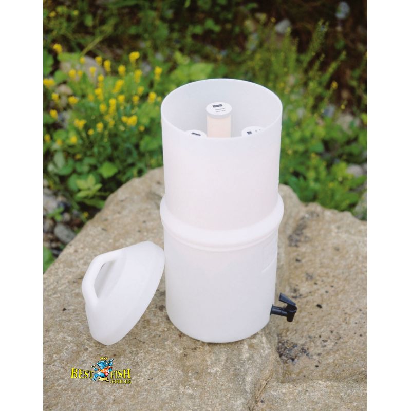 Устраняет из воды бактерии, простейших, водоросли, муть, споры и цисты. Работает благодаря гравитации. Скорость фильтрации: 4 л в час. Ресурс картриджа — до 150 000 литров.