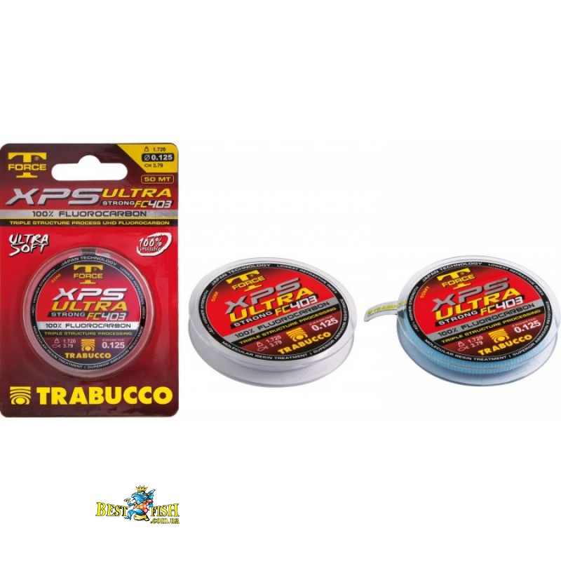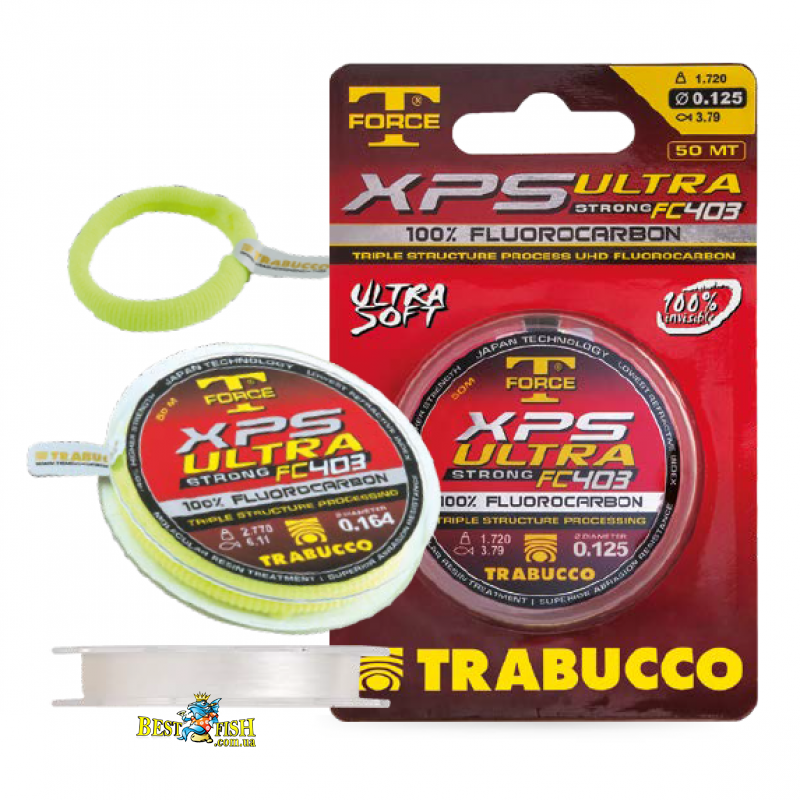 T-Force Xps Ultra Strong FC403 - 100 відсотків флюорокарбонова лінія, створена для використання там, де потрібні висока зносостійкість, мала помітність у воді та надійність вузла. Серія побудована на тришаровій структурі й відома підвищеною міцністю порівняно зі звичайними флюорокарбоновими рішеннями. Завдяки низькому коефіцієнту заломлення матеріал майже не помітний у воді, що особливо корисно при роботі з обережною рибою. Для моделі також характерні низька розтяжність, добра стійкість до стирання та відсутність вираженого ефекту пам'яті. Розмотування 50 м, діаметр 0.300 мм і навантаження 8.30 кг роблять цю лінію практичним вибором для шок-лідера або повідцевих рішень.
