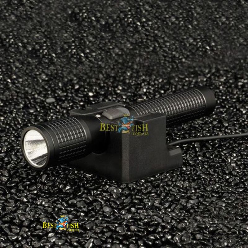 Управление фонарем происходит с помощью кнопки расположенной на боковой поверхности корпуса фонаря и позволяет быстро выбрать один из 5 необходимых режимом - Максимальная яркость, Средняя яркость, Пониженная яркость, Стробоскопический режим и режим Временного включения