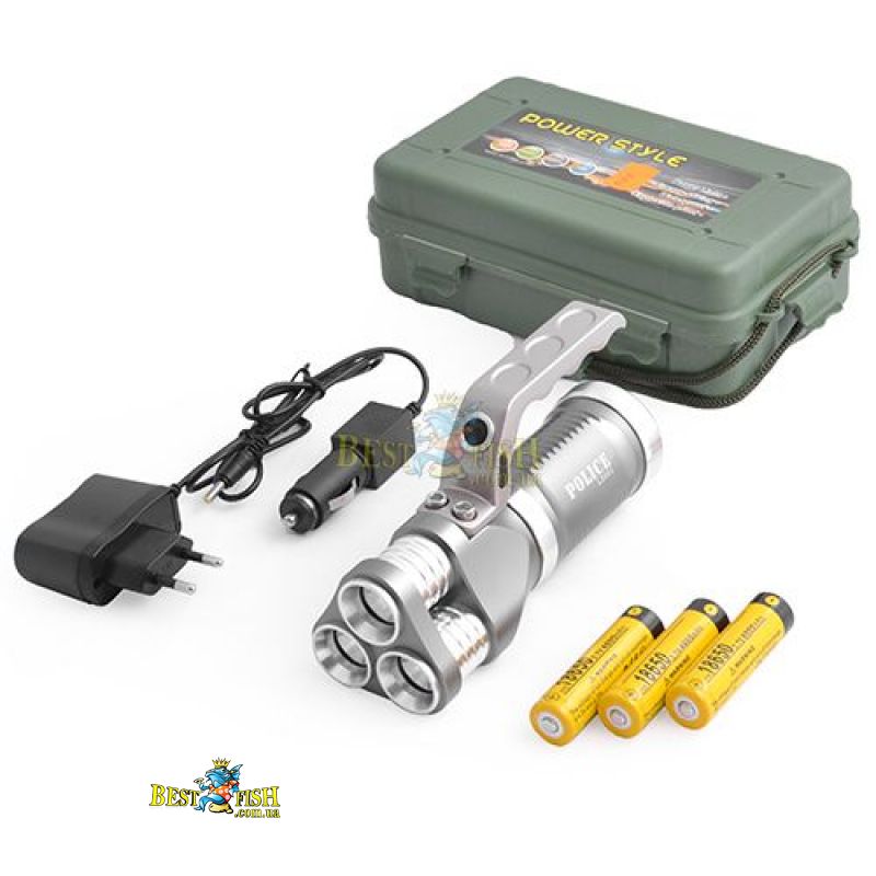 ліхтарик / 3 x акк 18650 / ЗУ 220V / ЗУ 12V / касета для 3-х акумуляторів типу 18450 / подарункова коробка