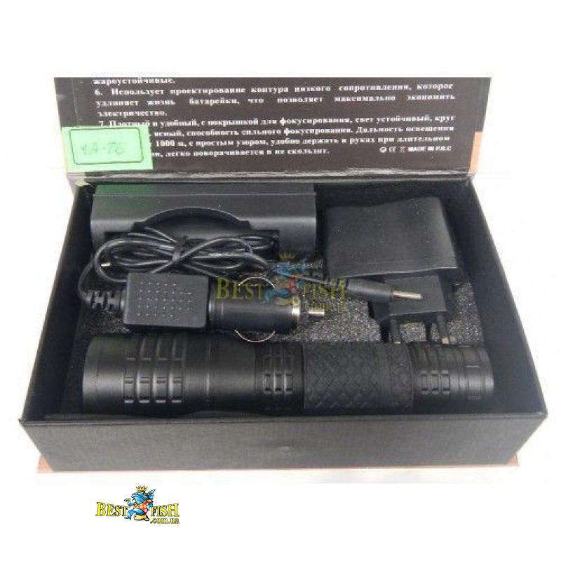 Ліхтарик BL-1A-T6, акумулятор Bailong 18650 mAh, зарядний пристрій для акумуляторів BL-006 500mA, зарядний пристрій для тактичних ліхтариків, автомобільний зарядний пристрій, касета для трьох батарейок типу AAA, подарункова картонна коробка.