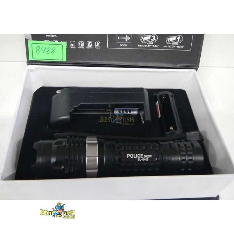 Ліхтарик BL-8488 / акумулятор 18650 1 шт / касета на 3 ААА / ЗУ 220V / подарункова коробка