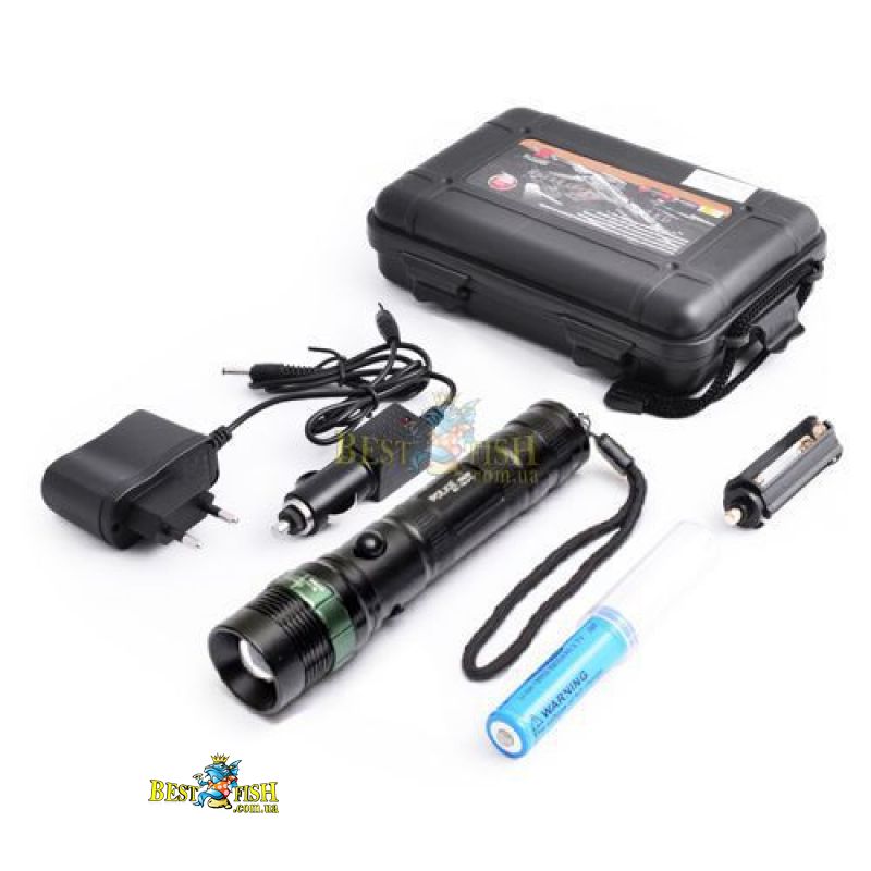 ліхтар / ак. 18650 / ЗУ 220 V / ЗУ 12 V / касета для 3х батарейок типу ААА / ремінець на руку / подарункова упаковка