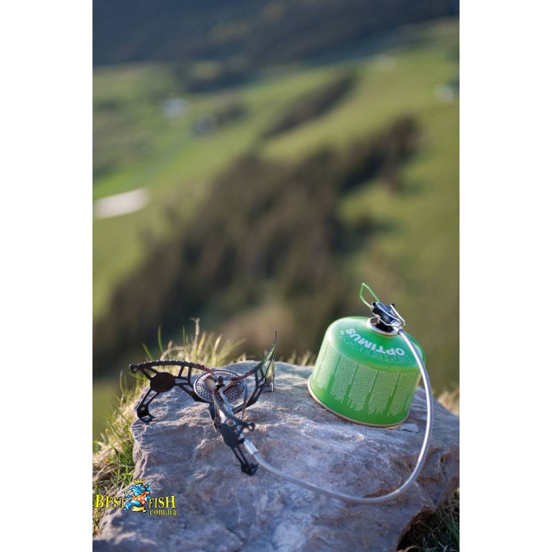- встроенный 4-х сезонный режим работы на газу: для эффективной работы при низких температурах; в случае, когда в баллоне заканчивается газ; или если вам требуется повышенная мощность. Для того, чтобы переключиться в режим жидкого топлива, необходимо открыть складные ножки и просто перевернуть баллон. Специальная конструкция горелки делает работу на жидкомгазу стабильной и удобной.