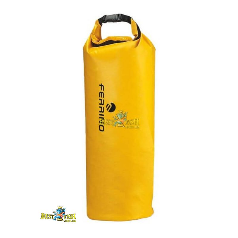 Гермомішок Ferrino Aquastop S. Дуже міцний і щільний гермомешок циліндричного формату з нейлону з PVC-просоченням і звареними швами забезпечує водозахист на рівні 10 000 мм. Структура матеріалу Ripstop і висока щільність гарантує високу зносостійкість і міцність на розрив. Мішок має згортатися верхню частину, фіксується фастексом у вигляді ручки. Жовтий колір дозволяє не нагріватися вмісту гермомешкі від сонячних променів і легко ідентифікувати гермомешок навіть в умовах недостатньої видимості. Гермомішок може захистити як сухі речі від вологи, пилу і бруду, так і сухий рюкзак від мокрих і брудних речей, упакованих в гермомешок.