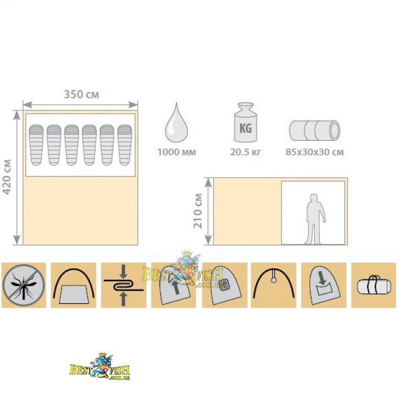 Материал наружной палатки / влагостойкость (мм H2O) Nylon 210T 70d PU /1000