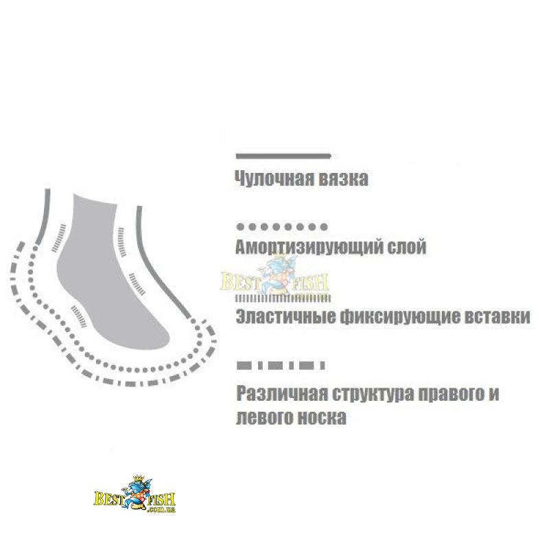 Antitorsion stretch band - эластичные вставки на ступне и/ или щиколотке, которые обеспечивают максимальное прилегание носка к ноге и препятствуют его вращению и сползанию в обуви. Такие носки лучше облегают ногу и обеспечивают стабильность во время ходьбы и особенно во время занятий спортом.